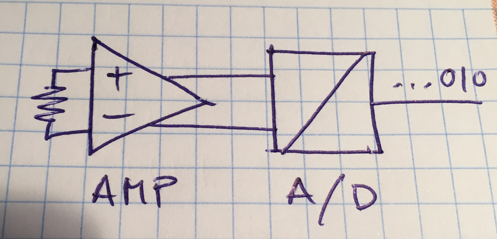una resistència a temperatura ambient, té electrons lliures que es mouen aleatòriament (càrrega negativa) i podem mesurar-ne el desequilibri momentani amb un conversor Analògic/Digital